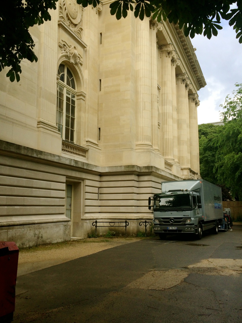 Thwarted, but still willing to fight the good fight, I snuck all around the Grand Palais and even into the delivery area out back. I didn’t get much, but I did see part of the show’s stage and the trucks that the lights were transported on.