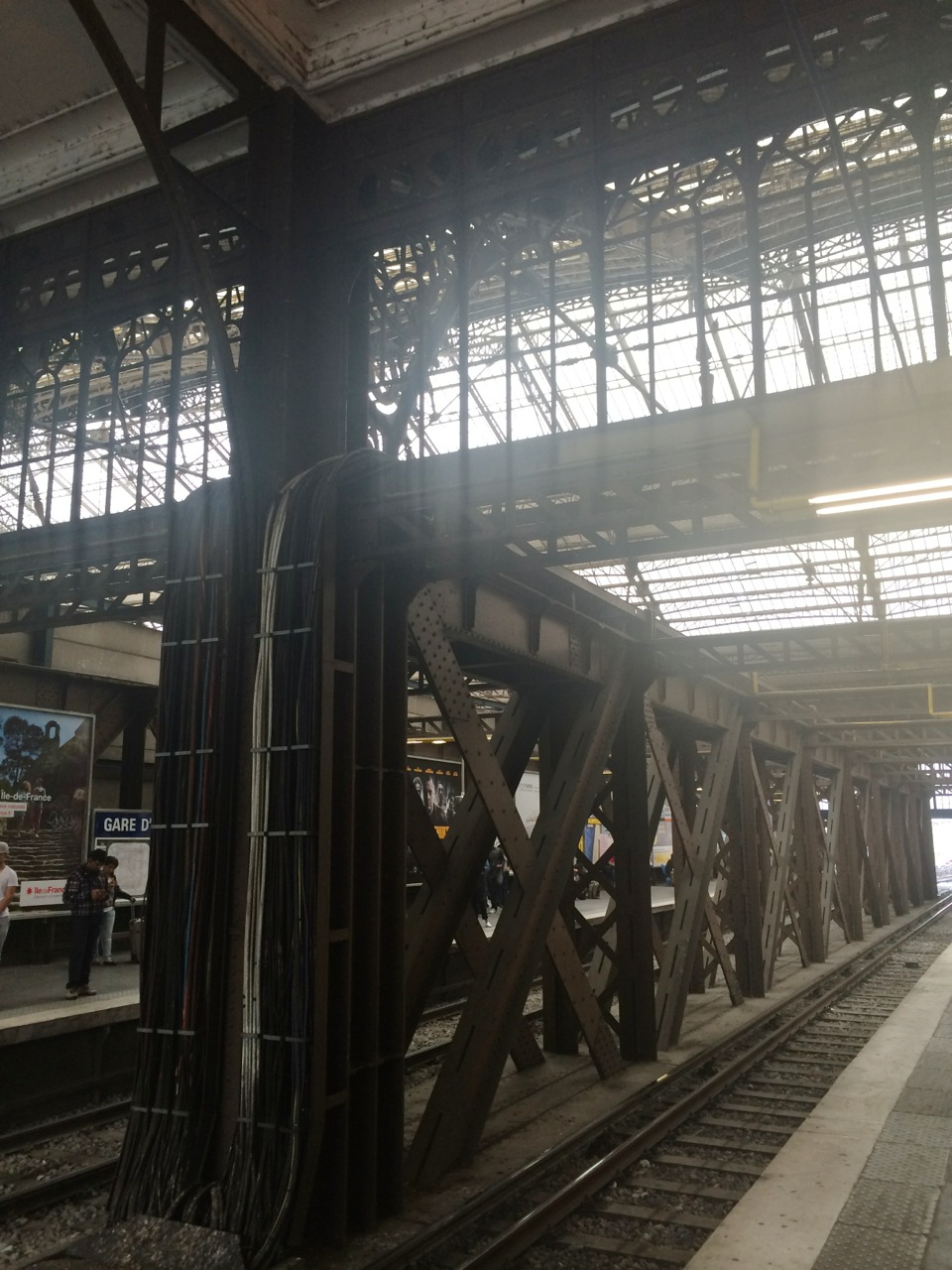 We took the RER, which is a variant of the Métro. It has fewer stops, so it’s not always practical, but it’s faster than switching to three different trains to cross the city. Today we were off to find a village and check out a mall. I couldn’t find anything to do indoors, so we prayed for a light drizzle. We got a downpour.