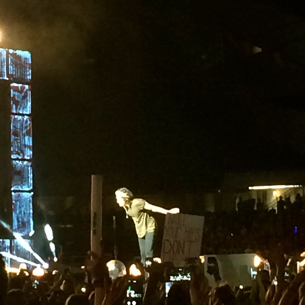 The boys were clearly in a better mindset than they were the night before. There were jokes and chitchat and Harry spit out water like a whale. They even brought a young girl up on stage to sign her cast. I think she might be a saint now.