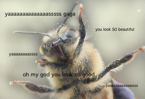 One of my favorite memes of all time is the one of Lady Gaga sitting down smiling and there is a bee in the window. The following images zoom in on the bee who is drooling in ecstasy and screaming, “YASS GAGA YOU LOOK SO GOOD.” I died every time I saw it on Tumblr. I can’t find it anywhere now, which is a real shame. I can’t find the GIF, but I found this:
