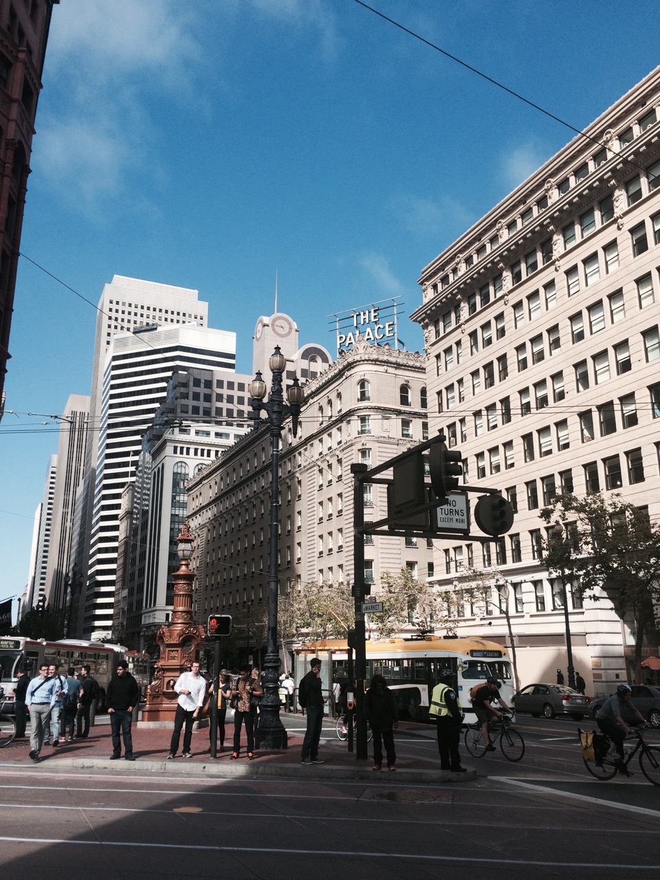 Our room was on the sixth floor looking down at Market Street, and I was intensely pleased. The ceilings were easily fifteen feet tall. The shower had three heads. There was a television that worked. There was a corkscrew. Two queen beds were covered with intensely soft sheets. There were a dozen pillows per person. All of the lights worked. The carpet was so plush that you sank into it! The walls were painted a calming blue. It was perfect. PERFECTION.