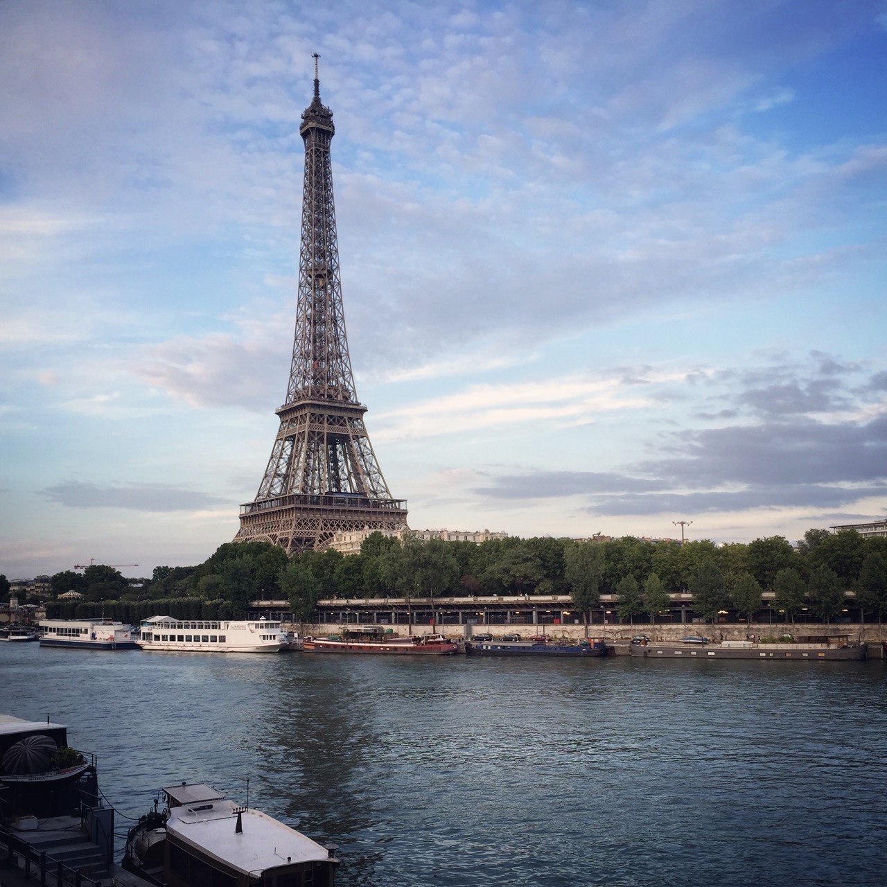 I tried to make myself look like a passable member of society — not an easy feat, mind you, when my cupboard of hair creams, gels, sprays, and potions are an ocean away — and then headed off to my favorite restaurant in Paris. I tell you about it every time I’m here. It’s a tourist restaurant that everybody on TripAdvisor detests! I absolutely adore it. I’ve had one bad experience there, but that was a fluke. If you do your best to speak French and watch out when ordering drinks, you’ll have an enchanting evening. I did. I loved watching the hoards of tourists run by to look at the Eiffel Tower whilst sipping on a Kir Pêche. That’s my drink at cafés…usually. It’s so good. The entire experience was a treat.