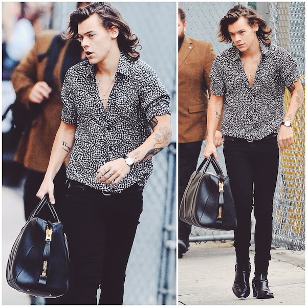 Harry Styles with Tom Ford wide zip duffle bag