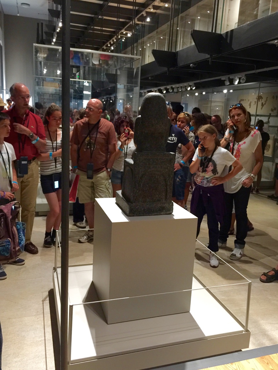 I’m not saying that I’m the only devoted amateur Egyptologist in the place, but I can guarantee you, I would bet my life on it, that the vast majority of people staring at the Kings List do not care much about it. If it were up to them, they would have scanned it with their eyes very briefly and moved on to something more visually stimulating like one of the beautiful Books of the Dead that the museum has unrolled and put on display. But no. There they stand, an unmoving, slowly shuffling mass of educated zombies. It was truly infuriating, reader. Look at them here ruining the flow of the museum: