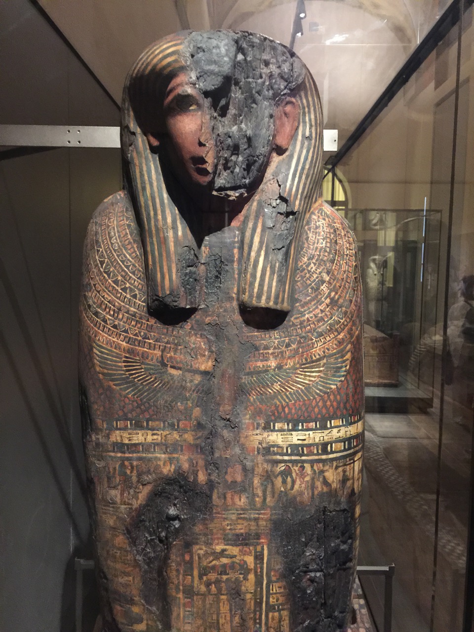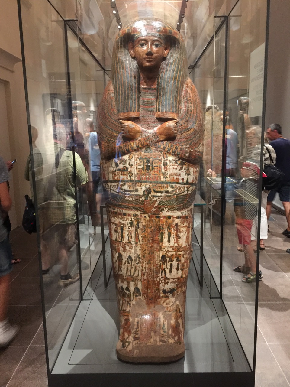 After examining some first editions of Champollion’s books on Egypt, watching a technician restore a sarcophagus, and peer into the eye sockets of a predynastic mummy, I sat back on a bench to watch the people. I saw several visitors go from each case in the exhibit and photograph every single thing in it. They weren’t students. They weren’t researchers. They were just people who were truly never going to look at those pictures of blurry ostraca ever again in their lives.