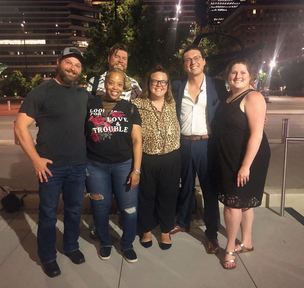 I love the theater. In another life, in a life where I could sing, I would thoroughly enjoy being in a musical. I’d love to belt out a showtune for no reason for the delight of my audience. But I’m not vocally gifted, reader. I can hold a tune whilst I warble, but it’s hardly the stuff required for Broadway. That’s all right, I suppose, I’ll get around to it when I’m reincarnated. I firmly believe in reincarnation. I’ll probably come back as a spider, though, since I’ve spent so much time in my life destroying them. I say all this to say, when I read that The Play That Goes Wrong was coming to Des Moines, I had to be sure to be there. I saw the show when it was in New York City on the same night that Martha Stewart was a few theaters away attending Sunset Boulevard, the night after I was at that performance. Can you believe? Can you even imagine my outrage? The play was a hoot and a half. I laughed for hours from my hysterically bad seats. I literally had the ones furthest from the stage, but I had an unobstructed view, and that suited me just fine. The premise of the show is that a crappy English theater troupe is mistakenly booked at a nice theater to put on a show that the hiring agent thought was something else. That’s the background, but it’s hardly the point. The rest of the show is all about every single element that goes wrong during the performance and the perseverance of the actors who are risking their lives to entertain the audience. The stage falls apart, the actors are knocked out, the electricity sparks, lines are forgotten, and on and on. It’s a delight and I was so excited that it was coming to Des Moines so that I could take Jessica and Alison. Weirdly, there are many elements of the production that are similar to an insane one-act play that Alison and I wrote in high school called In England! We did it mainly because we wanted to see what we could get away with. And somehow, our little group got the highest score possible even though we literally had abominable Southern accents, a possession by Beelzebub, and jazzercising. I mean…honestly, it was a hoot. The Play That Goes Wrong has many of these elements and that added to our cackling. We screamed with laughter and then screeched some more when we began to connect with the actors on social media. That was wild. I was talking to one actor on Instagram. Alison was talking to another on Facebook Messenger. In the end, we were invited to meet the cast and made complete asses of ourselves.