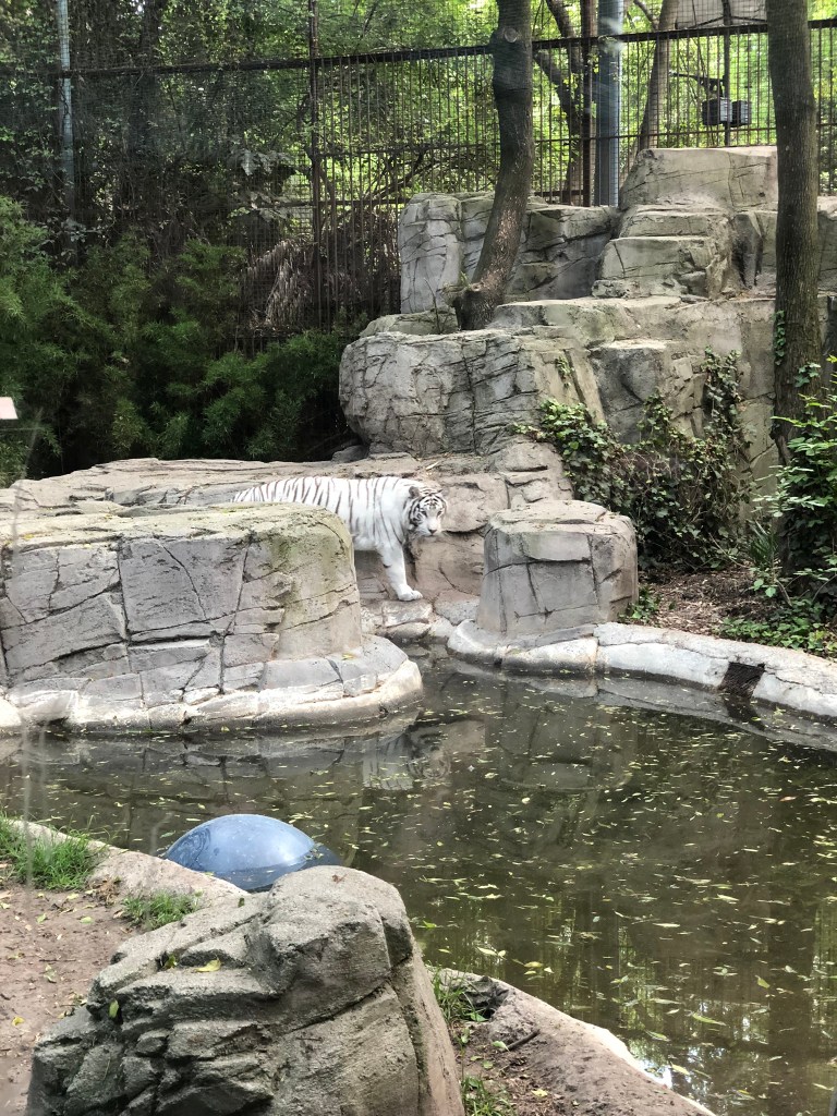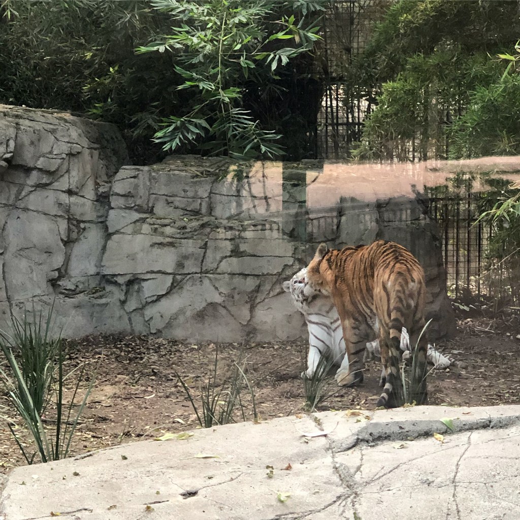 I don’t know what it is about big cats and us. We love them. We would do anything for them. We would undoubtedly, if we lived in a nation with less strict governance of “wild” animals, adopt and raise our own herd of lions. They would live in the house and have their own Instagram and be pampered far better than any biological child she or I might ever raise. Needless to say, when we saw the white tiger, strolling gracefully, stalking betwixt the trees, rolling, yawning, just existing…we lost it. It was too beautiful. It was a sensation to see that majestic creature so near to us, yet so far away separated by the glass. We stared longingly at her, and then something unexpected occurred.